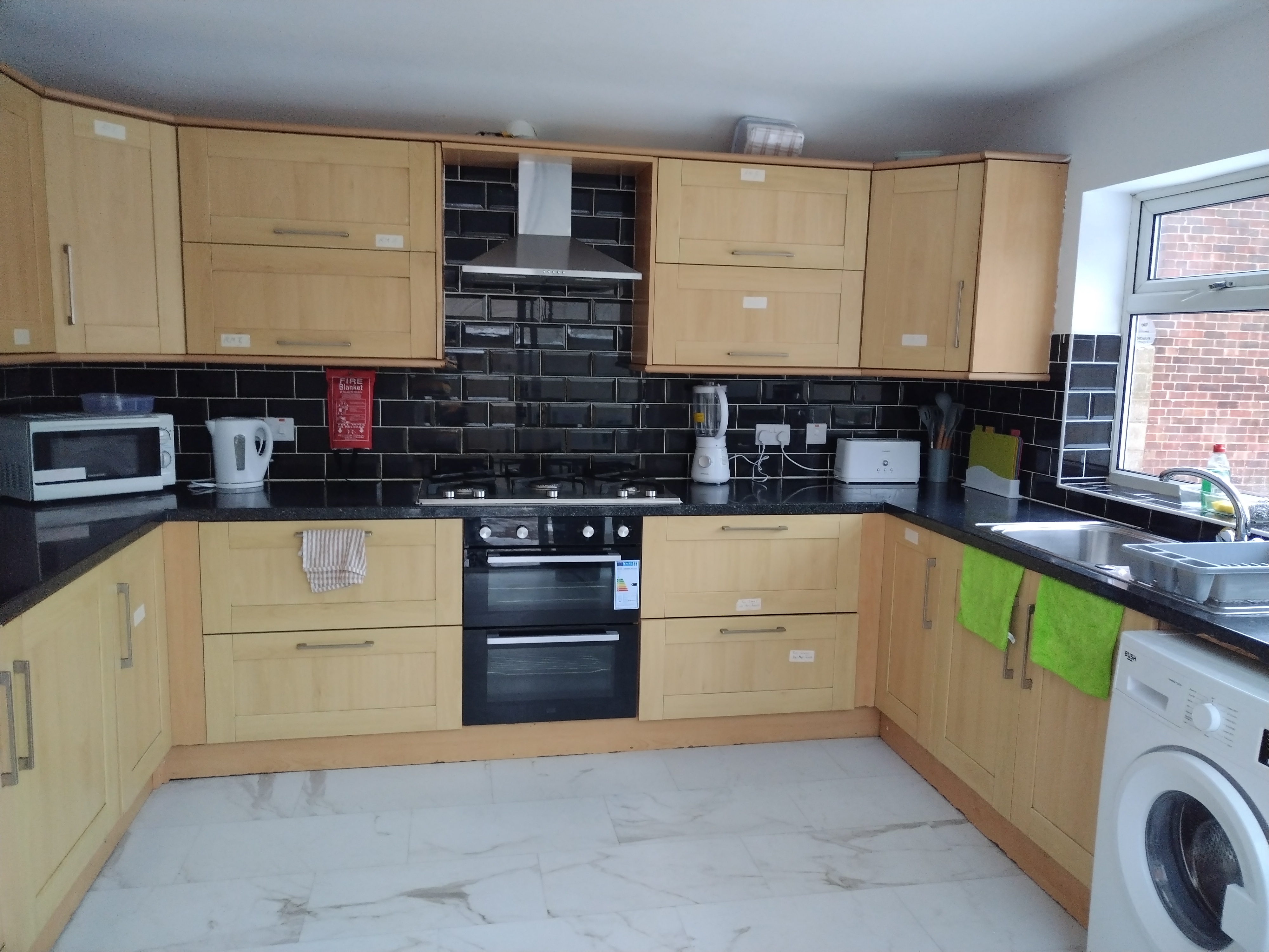 is a fully furnished 5-bedroom End of Terrace with a large Kitchen and Lounge Area with 2 bathrooms in a shared supported accommodation for single occupants for each bedroom.