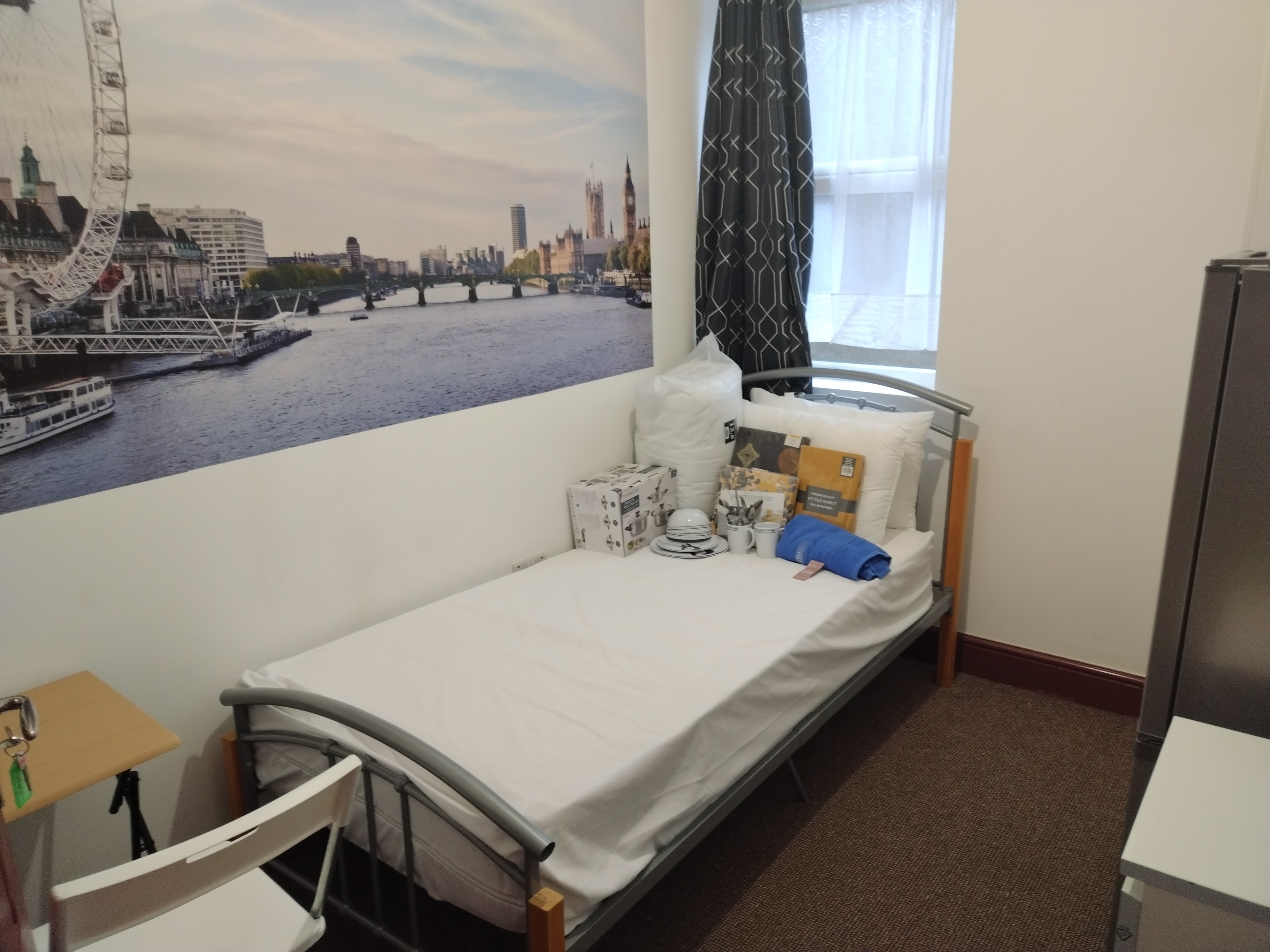 a desk, and a chair plus a fridge/freezer. Shared facilities include a fully furnished